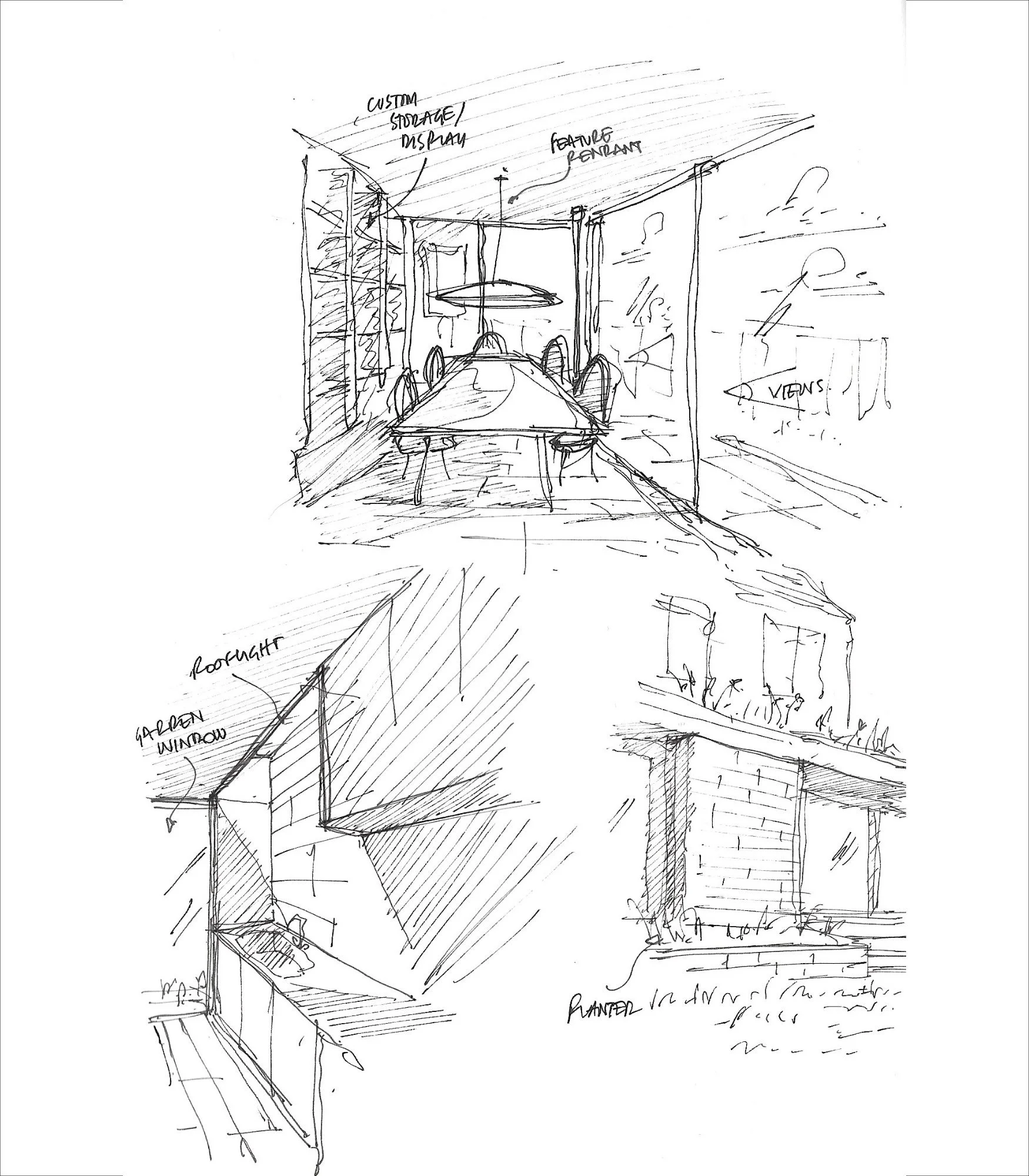 Internally the subtle use of roof lights above kitchen elements seeks to draw light deeper into the property, naturally framing out worktop and storage space.